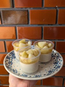 当店で人気のあるパンナコッタと組み合わせて、使用いたしました。下のパンナコッタ部分はジャスミンの茶葉で香り付けをしています。