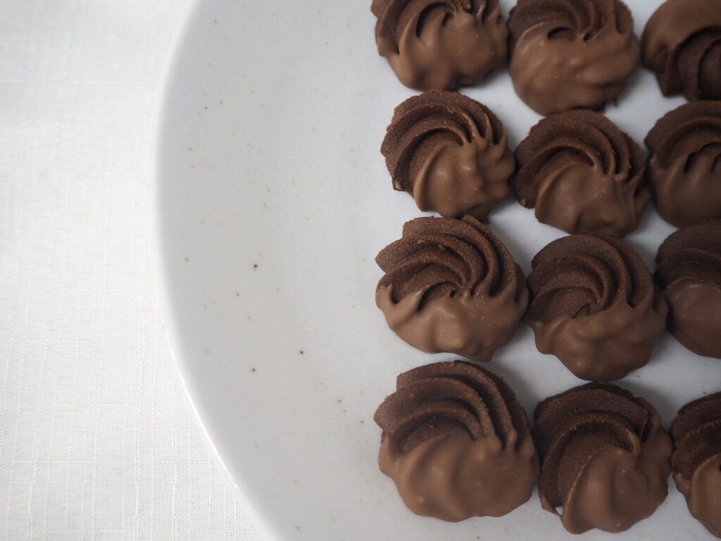 バトンショコラはプレーン、フランボワーズ、ダブルショコラ、アマンド、オランジュ5種類ご用意しています。パウンドケーキ、マドレーヌなどの焼き菓子にチョコレートをつけた少しリッチな焼き菓子です。オープン当初から販売している人気のシリーズです。夏季の間はチョコレートが溶けてしまうので販売はお休みしています。12月に入り徐々に販売再開しています。13日の店舗販売ではフランボワーズ、27日の店舗販売ではフランボワーズに加えてプレーンの販売も始めようと思っています。種類が増えて並べていくと違いやそれぞれの特徴も分かるので楽しみです。