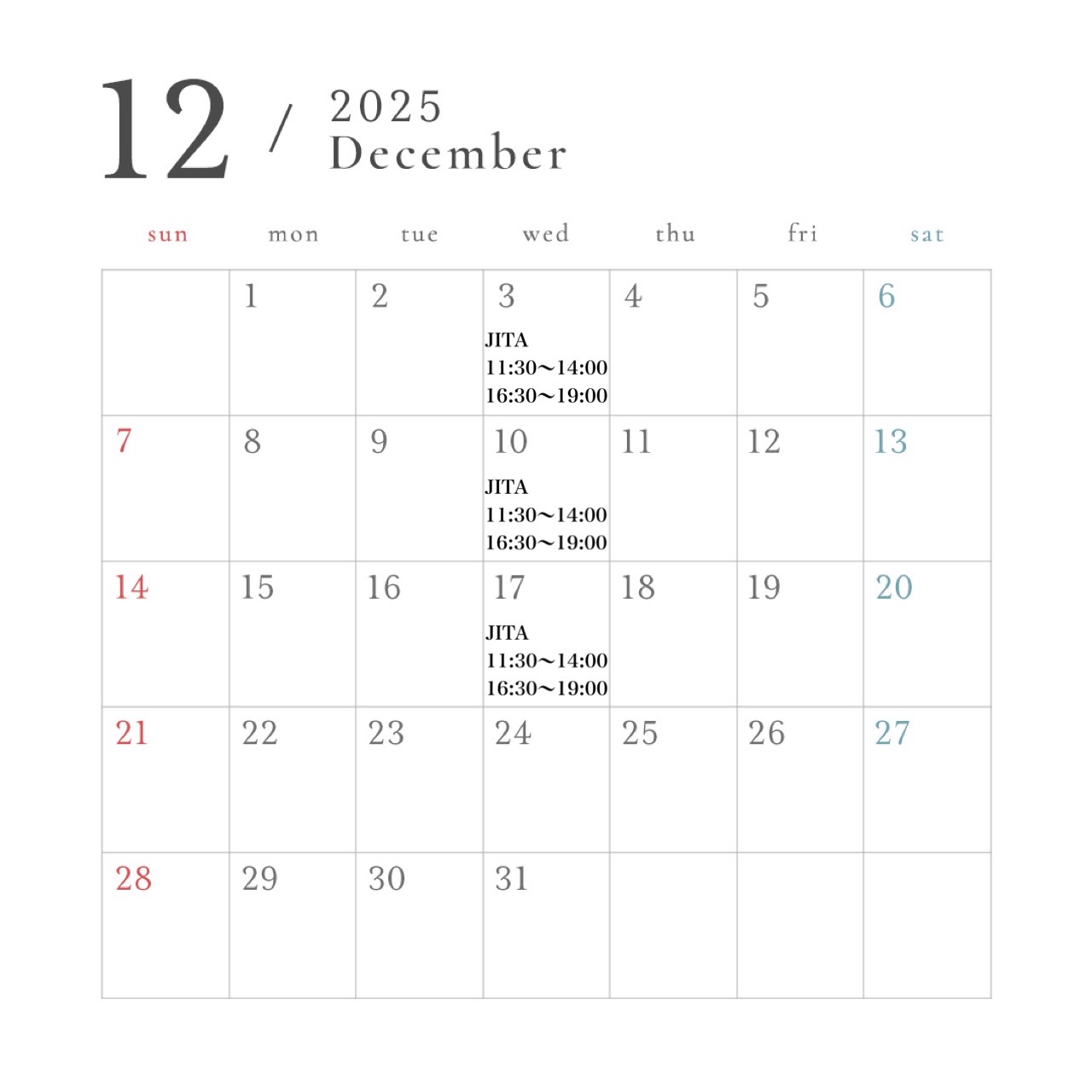 既に年内の営業は全て終了のなっておりますが、来年も引き続き毎週水曜日に神田JITAにて営業予定です。