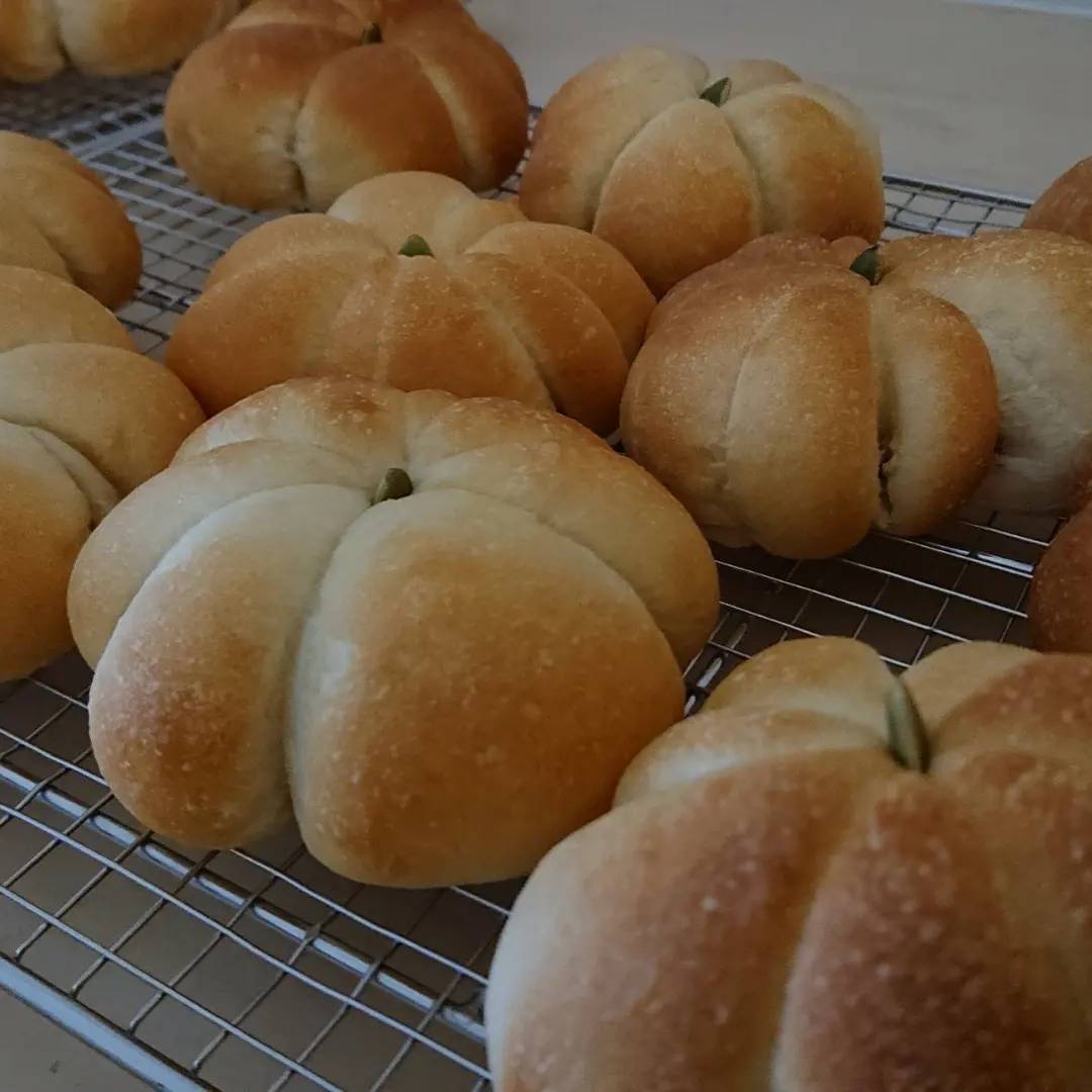 写真のかぼちゃあんぱんは材料調達の都合上、秋〜冬の季節限定となりますのでぜひ皆様お早めにお試しくださいませ。