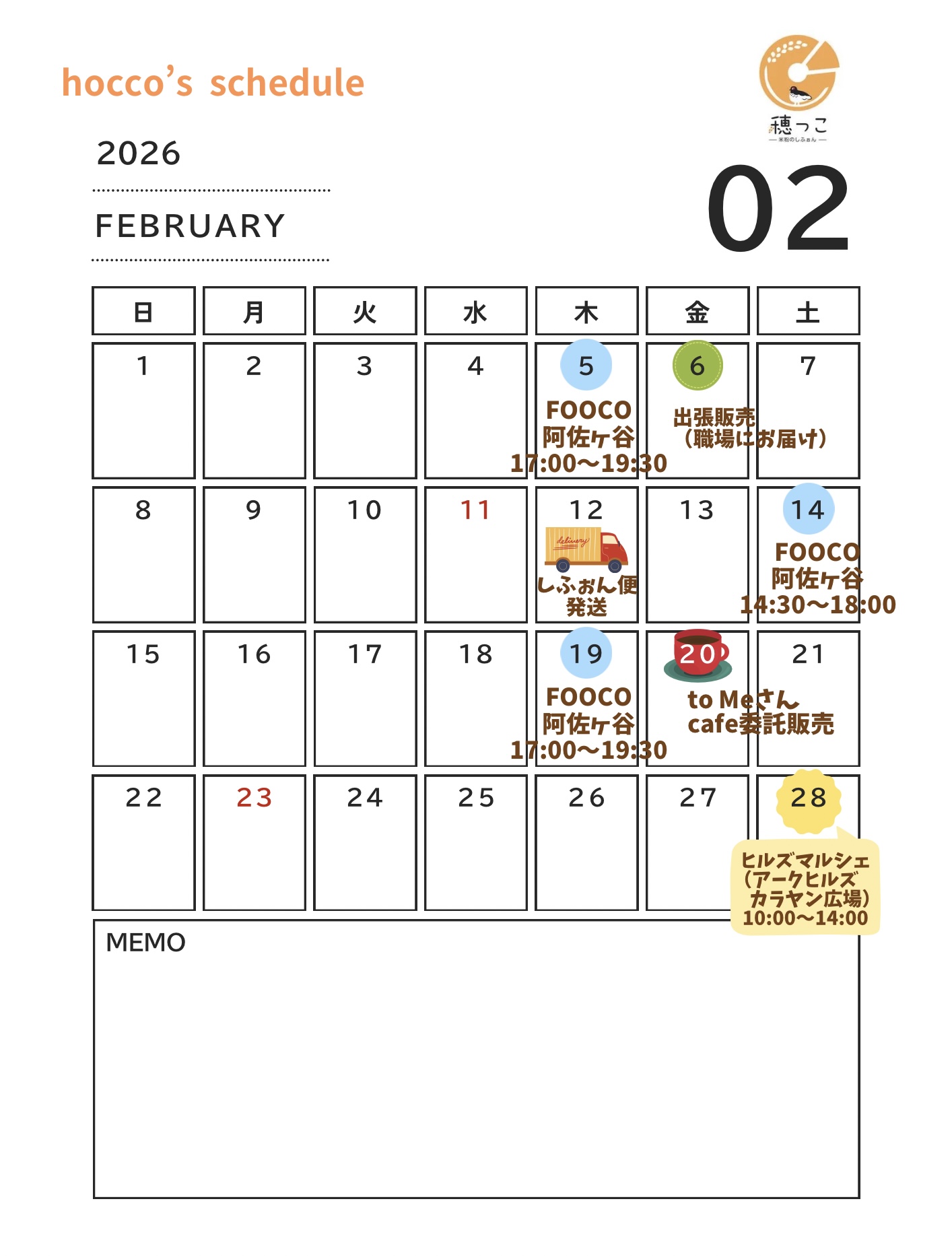 2月のスケジュール