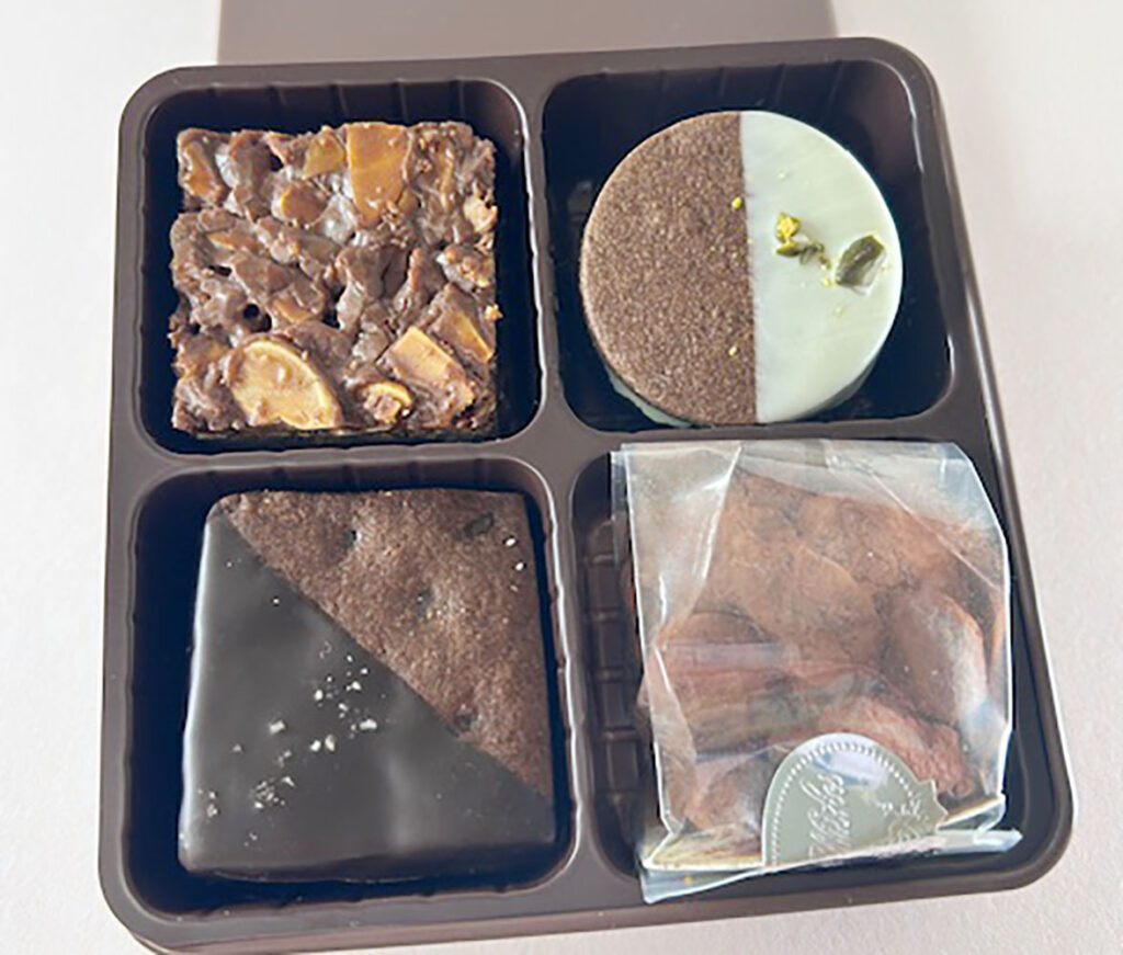 こんにちは、M sweetsです。2月のこの盛り上がる時期に本業が繁忙期なため、販売ができないという苦悩にあえいでおります(笑)。今年は自宅のキッチンで焼き上げたクッキーたちをお世話になった方々にお送りすることに決めました。初めてクッキー缶も詰めてみました。私のクッキーは大き目で厚みがあるので、冨澤さんで購入したクッキー缶にうまく入るか超心配でしたが、なんとか収まりました。テーマは「チョコレートを楽しむクッキー缶」トリュフやボンボンショコラだけでは食べ飽きるので、カカオニブがアクセントのフロランタンショコラ、塩が効いてる塩チョコサブレ、中にヘーゼル風味のショコラをはさんだショコラサンド、丁寧に炒って作ったアマンドショコラです。差し上げた方がとても喜んでくださり、来年は。。いや、遅ればせながら4月の販売で扱ってもいいかも!と思いました。気温が気になりますが。。仕事が忙しくてもお菓子は焼かないと落ち着かないですね(-_-;)。いろんな案や煩悩や妄想が頭をよぎります。良い方向にもっていって、4月に爆発(?)させたいです
