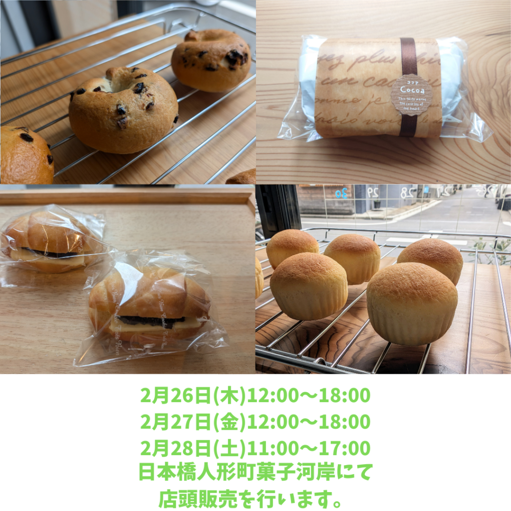 来月、3月の日本橋人形町、菓子河岸での店頭販売は、
