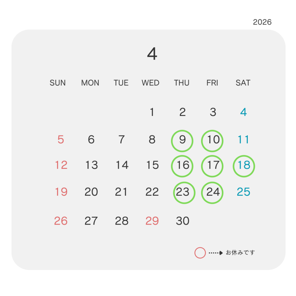 ECサイトでの商品発送日は10日(金)、17日(金)、24日(金)です。