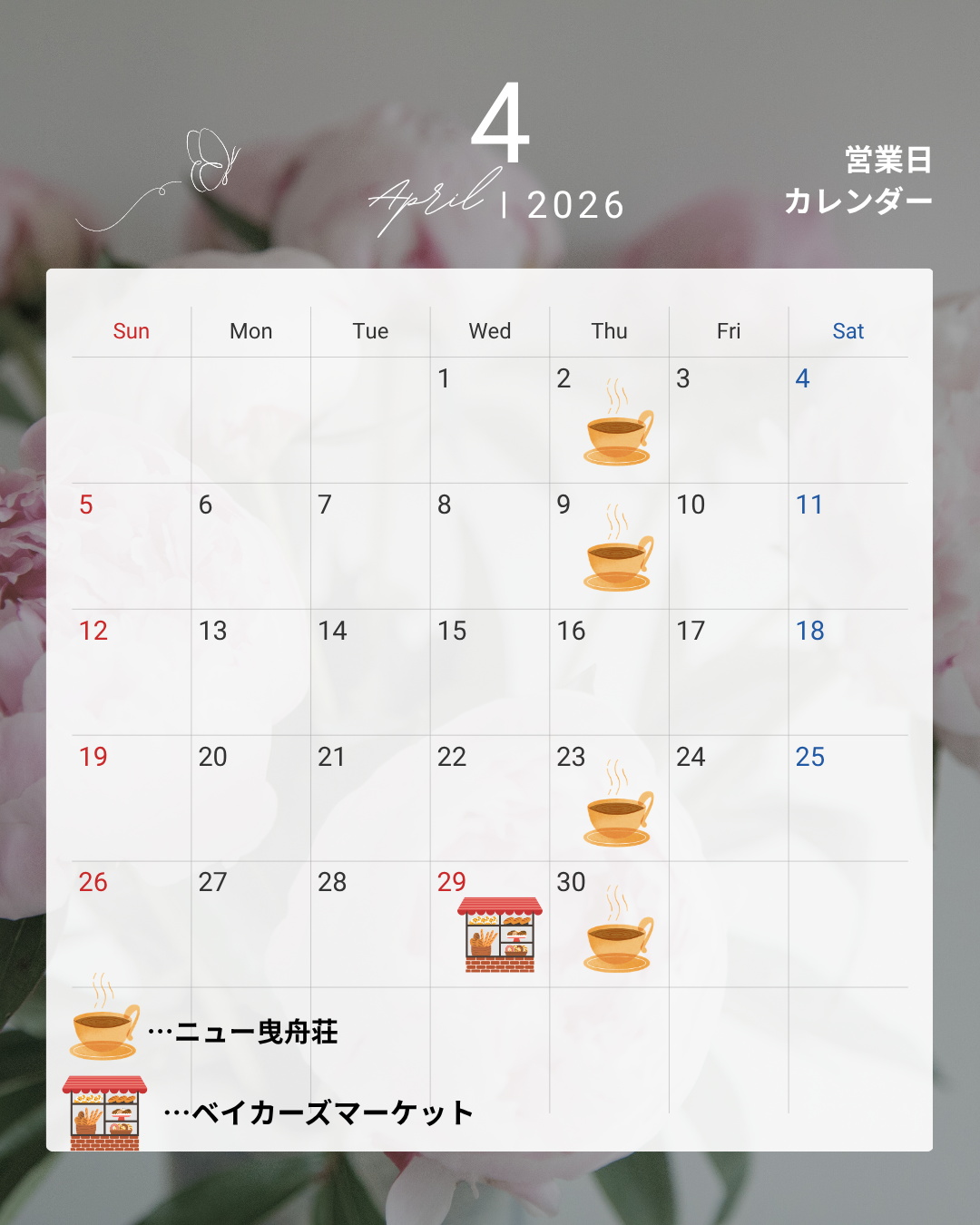 4月はベイカーズマルシェに出店します。
