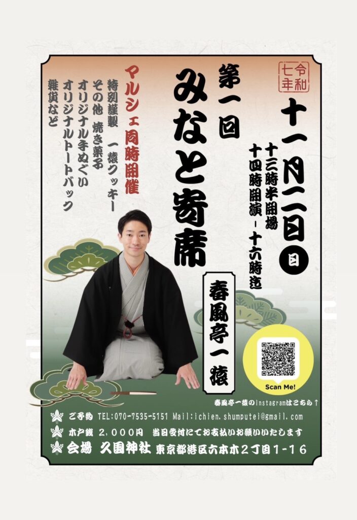 若手落語家の春風亭一猿さんのイベントに出店させていただくことになりました✨